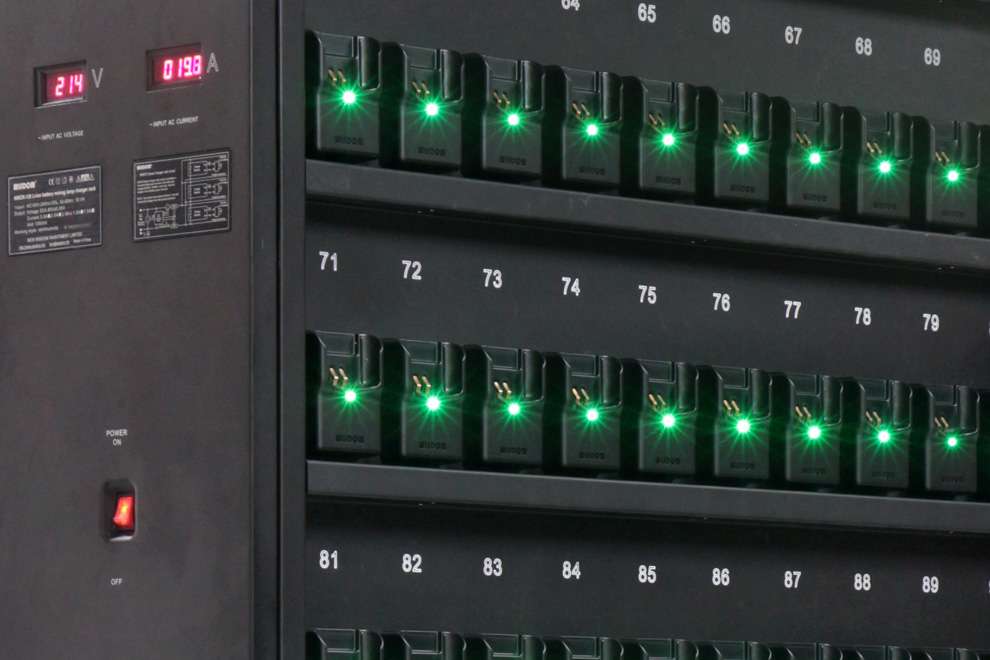 Rack cargador NWCR-120B es lateral doble cargador rack con 120 puertos de carga. Cada puerto de carga es un cargador rápido inteligente diseñado especialmente para WISDOM lámpara inalámbrico serie litio batería LED luz lámpara.