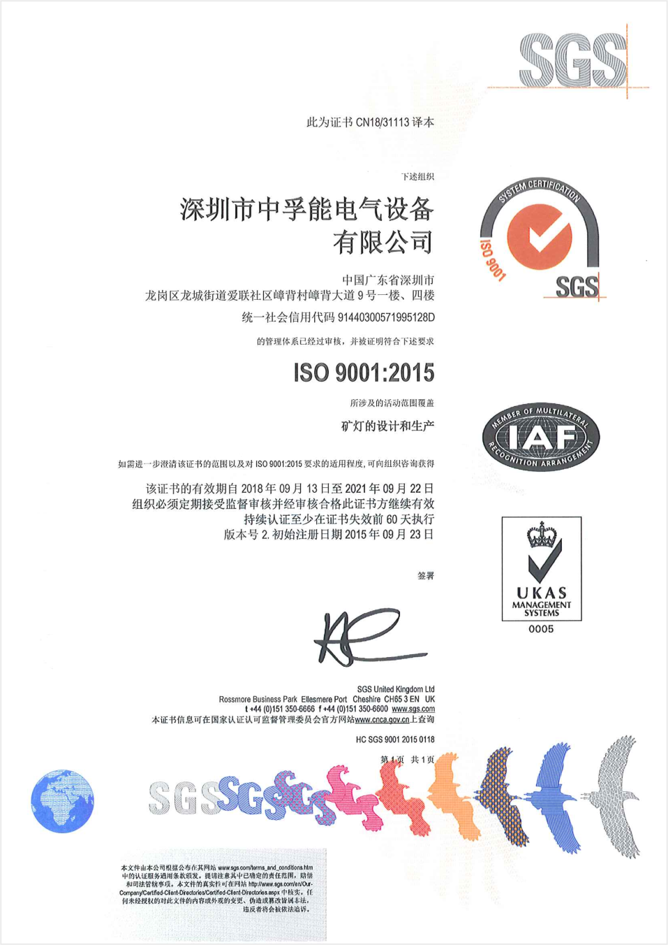 我司獲得了由國際著名認證機構SGS頒發的ISO9001:2015品質管制體系和OHSAS18001:2007職業健康安全管理體系認證證書。